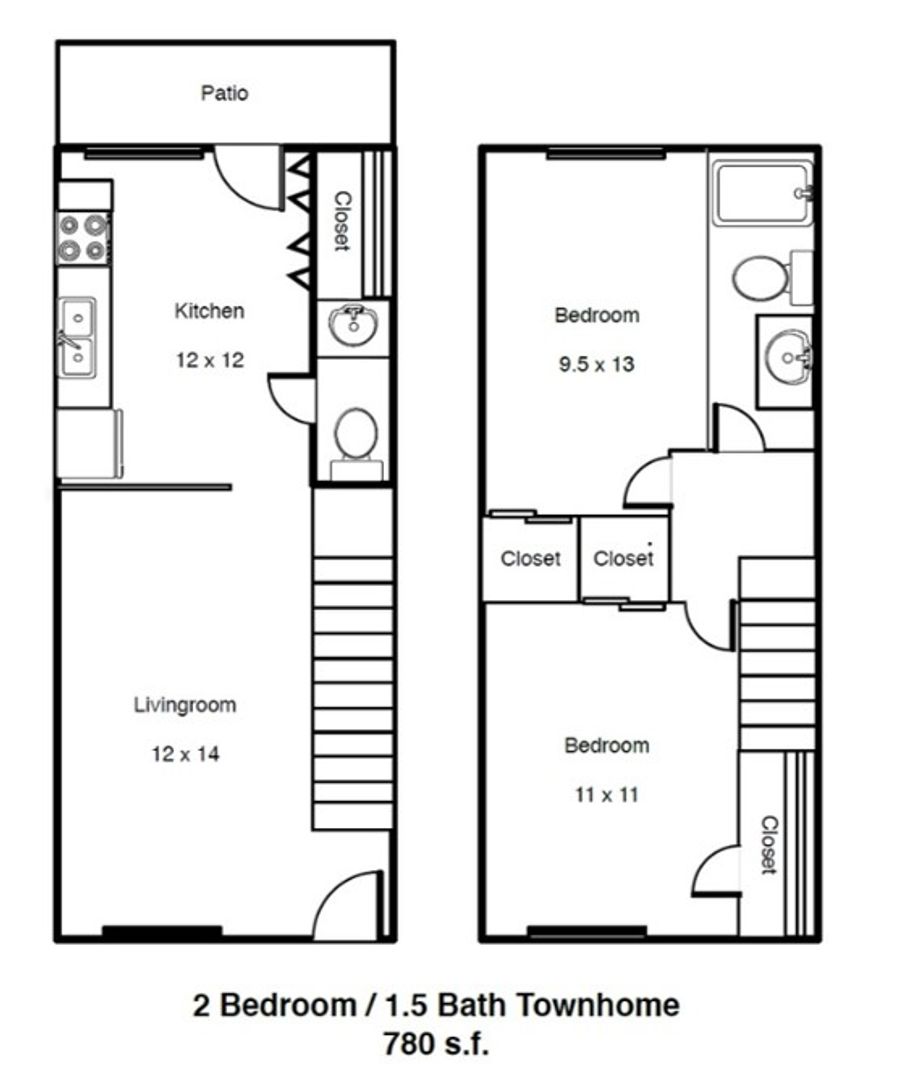 ✔ 2 Bedrooms, 1.5 Bathrooms – 780 sq. ft. of well-designed living space