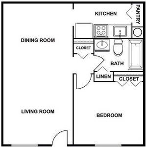 - Bedroom, 1 Bath: 576 sq ft of stylish and functional comfort